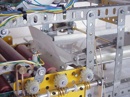 4. The depressor is lowered and the flapjack comes up, folding the paper back over the edge of the depressor.