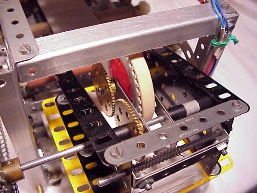 The stacking wheel is driven from the end of the lower creasing roller by a chain and a pair of 57t gears.